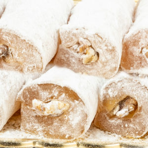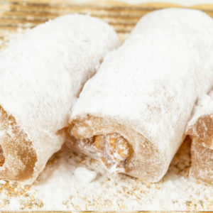 Suxhuk tradicional me arre te fresketa dhe me puder sheqeri.